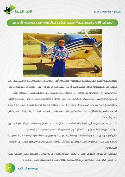 لعرض مسرحيته «حزلقوم» ،ومن المقرر أن يستأنف نشاطه الفنى بالقاهرة بمجرد عودته من الأراضى