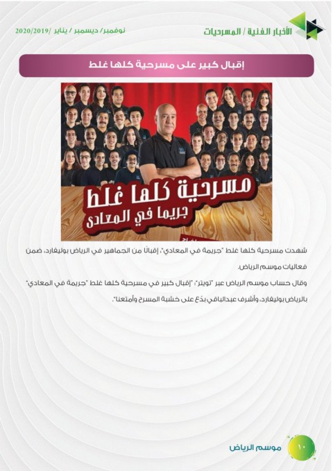 وقال حساب موسم الرياض عبر “تويتر”“ :إقبال كبير في مسرحية كلها غلط “جريمة في المعادي”