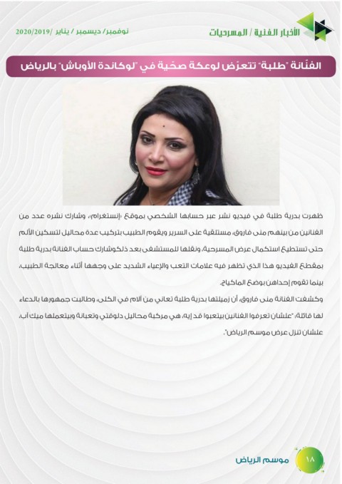 الف ّنانة “طلبة” تتع ّرض لوعكة ص ّحية في “لوكاندة الأوباش” بالرياض